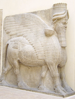 Ассирийцы, восприняв культуру древних шумеров, ввели традицию устанавливать изображения шеду по сторонам B дворцовых ворот, как защиту от злых духов. Статуи достигали пяти метров в высоту. Наиболее знаменитыми являются изваяния крылатых быков из B дворца Саргона II (кон. VIII в. до н. э.) в Дур-Шаррукине (ныне Хорсабад).