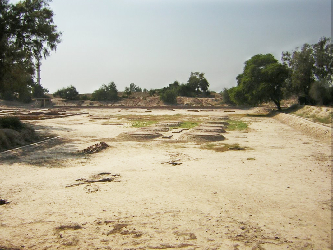 Так называемые «житница» Хараппы находится на холме F. Это кирпич структура, которая была построена на основе массивного кирпича более 45 метров с севера на юг и 45 метров с востока на запад. Два ряда из шести комнат, которые могут оказаться фонды, расположенных вдоль центрального прохода, что составляет около 7 метров в ширину и частично выложен жженого кирпича. Каждый номер площадью 15,2 на 6,1 метра и состоит из трех спальных стены с воздушным пространством между ними.Деревянная надстройка поддерживается в некоторых местах крупных колонн был бы построен на базе кирпичного фундамента, с лестницей, ведущей от центральной площади прохода. Малый треугольной открытие может послужить воздуховоды, чтобы поток свежего воздуха под полом этажа.