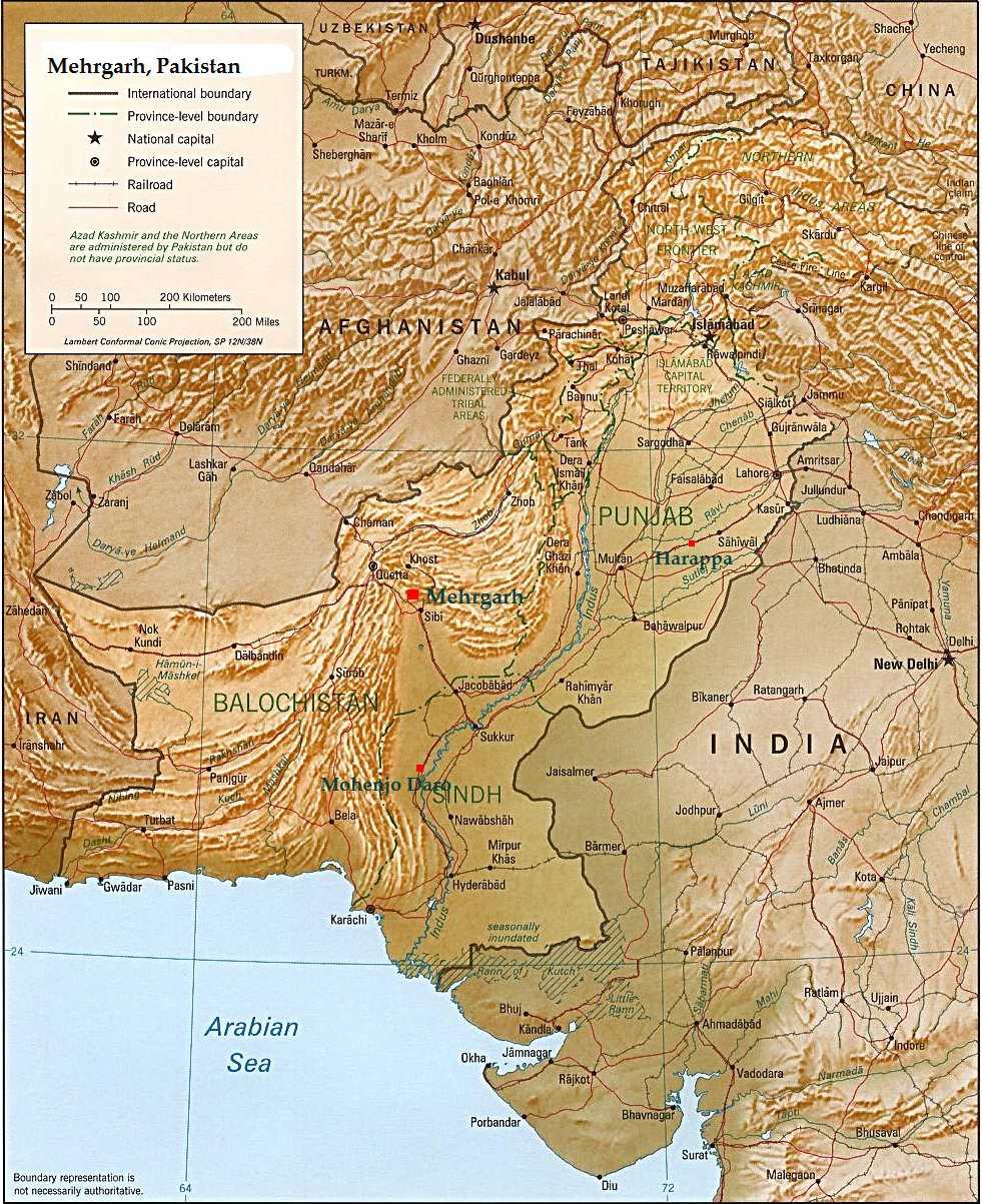 Mehrgarh is a Neolithic (7000-3200 BC) site on the Kachi plain of Baluchistan, Pakistan, and one of the earliest sites with evidence of farming (wheat and barley) and herding (cattle, sheep and goats) in south Asia.
