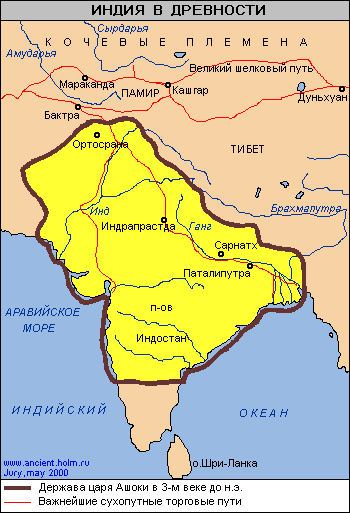 Индия по размерам своей территории и по количеству населения уже в далёком прошлом, также как теперь, принадлежала к числу самых крупных стран
